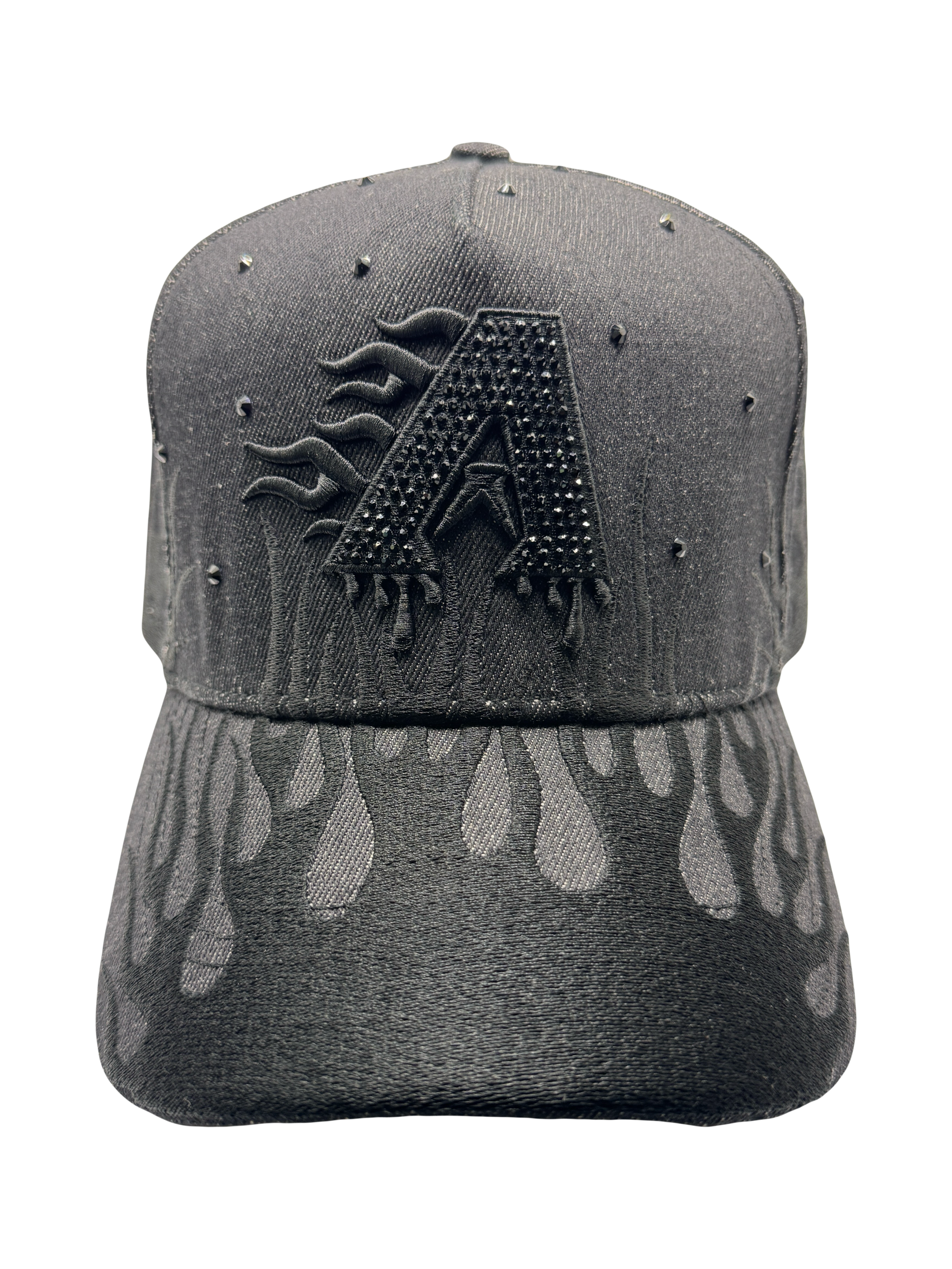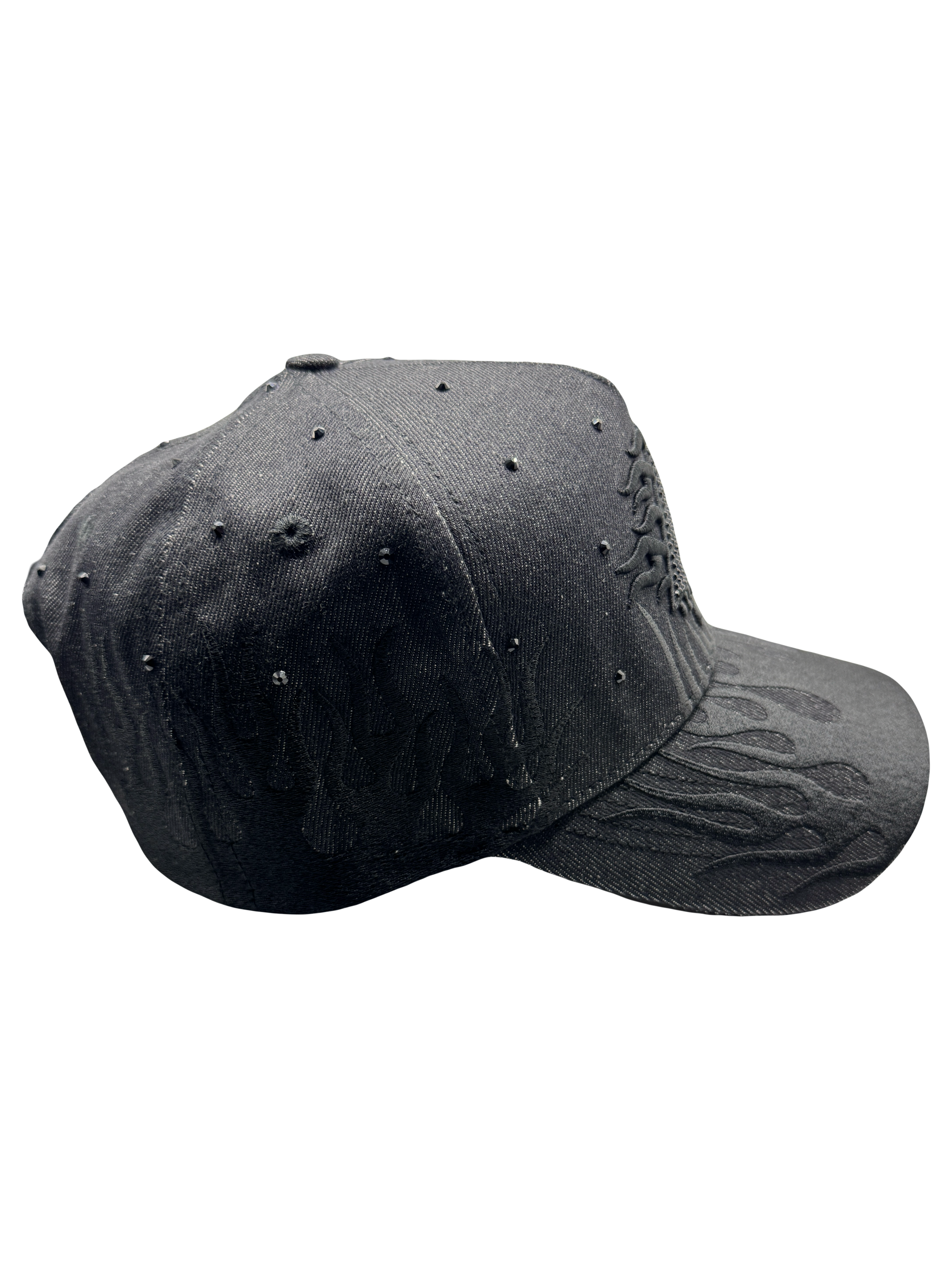 - RHINESTONES IN MAIN LOGO AND AROUND HAT